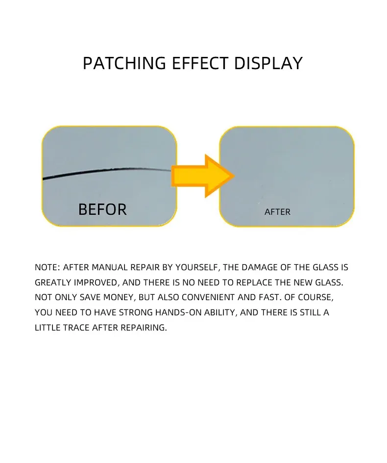 • Upgrade Auto Glass Nano Repair Fluid :The nano repair fluid ensures that your car's windshield is repaired to its original condition.