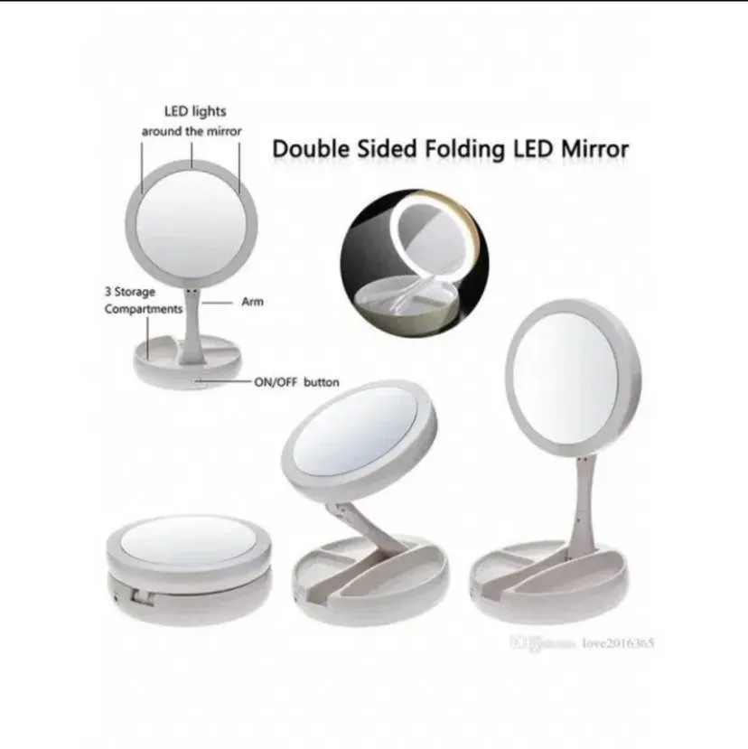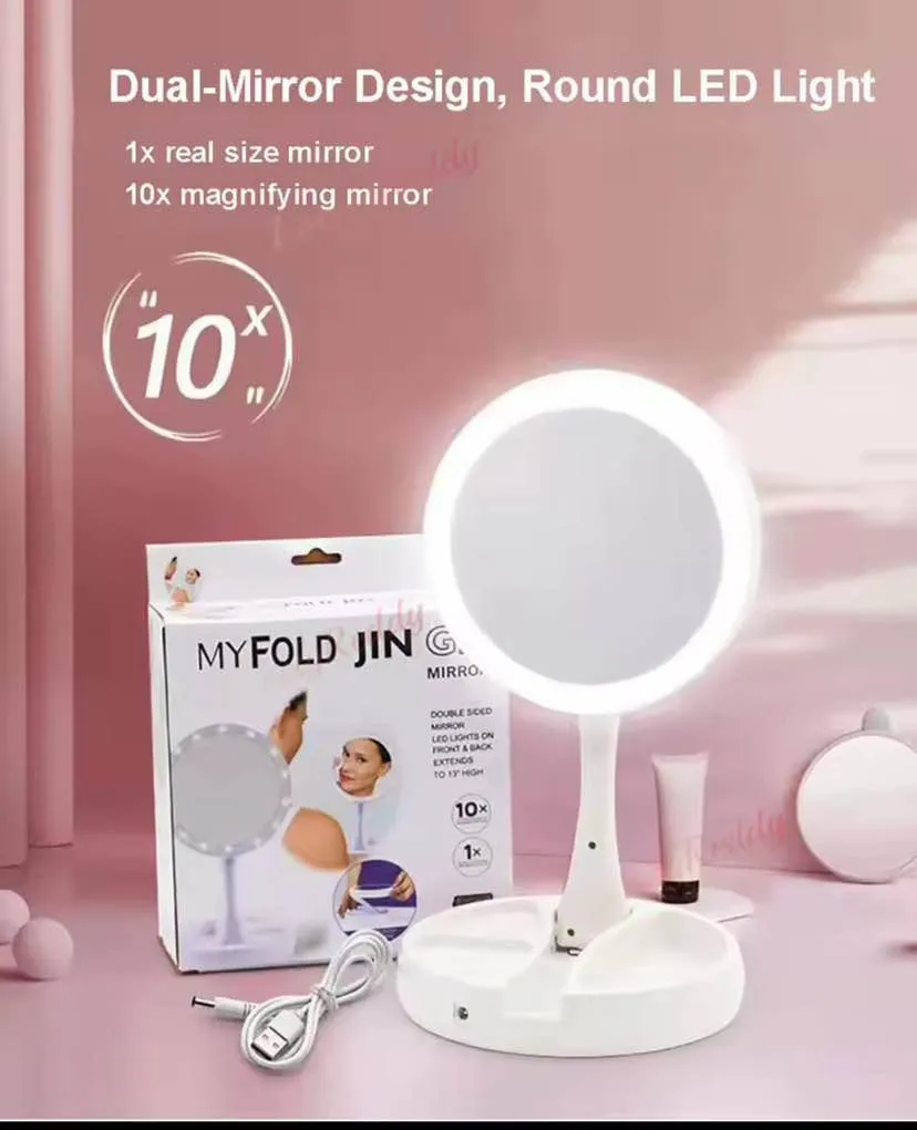 Product details of MyFold Jin GE LED Makeup Mirror with Light – 10X Magnifying Dual-Sided, USB Rechargeable, Foldable with Storage Tray
